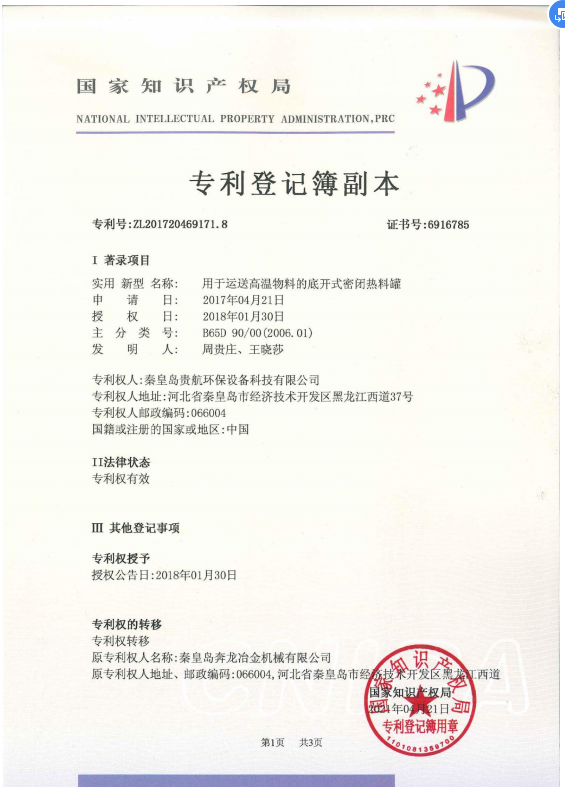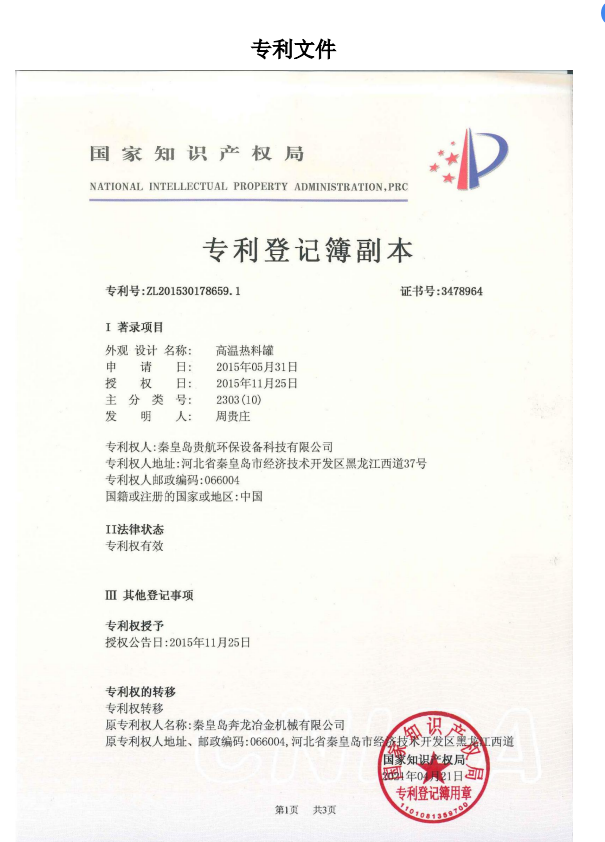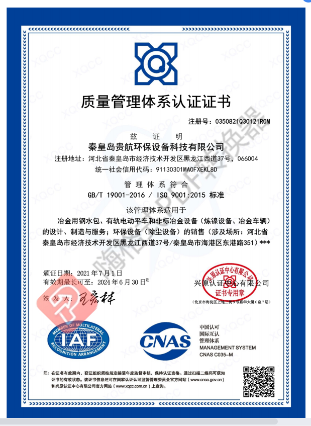 公司严格质量管理,注重产品研发和技术创新,2021年4月成立了冶金车辆设计研究所,同时还与北钢院、包钢院、武钢院、马钢院、唐钢院、重庆院等专业研究院建立了稳固的技术交流和合作关系,特聘北京钢铁设计研究总院高级工程师3名,联合设计开发新产品。公司还制定了铁水罐、铁水罐车、双罐料车和环保除尘设备等七类产品生产技术标准,公司生产的系列热料罐“开拓市场、满足需求、追求卓越、持续发展”的经营理念,愿与国内各大钢铁企业建立良好的伙伴关系,精成合作,携手并进,共同发展,为冶金行业的腾飞作出更大的贡献,开创贵航公司新纪元!